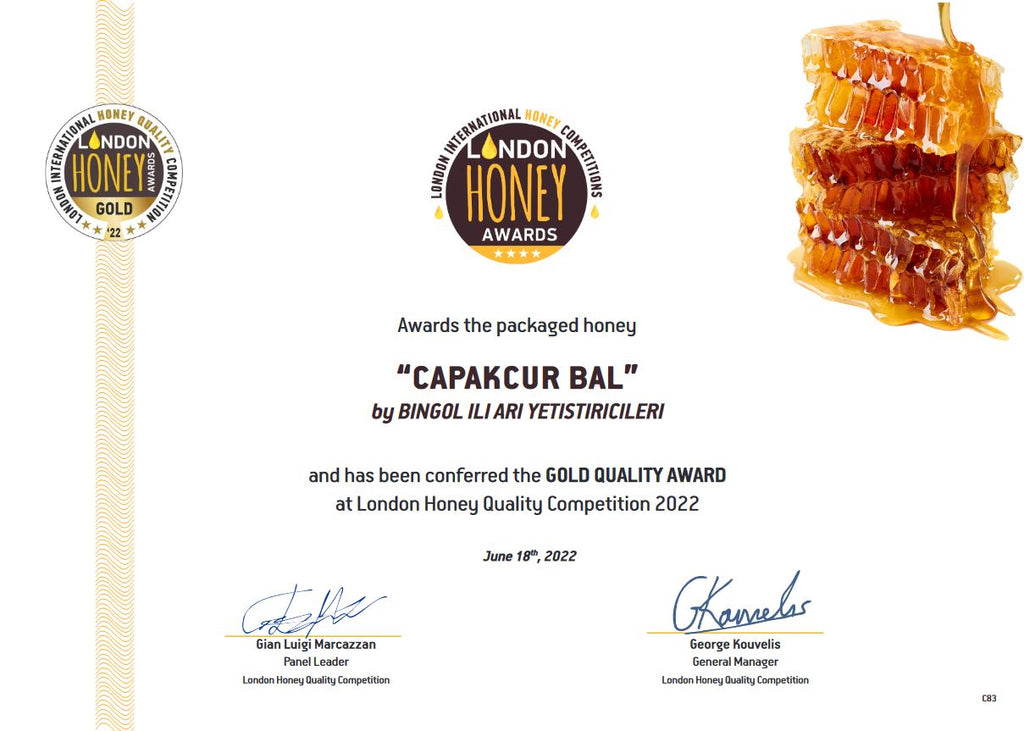 Dieser Honig gewann die Gold-Auszeichnung bei den Honig-Qualitäts-Wettbewerb 2022 in London und 2023 bei der Internationalen Honig Auszeichnung in Paris.