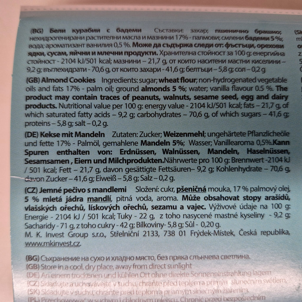Allergene: Gluten, Milch. Kann Spuren von anderen Nüssen und Erdnüssen enthalten.